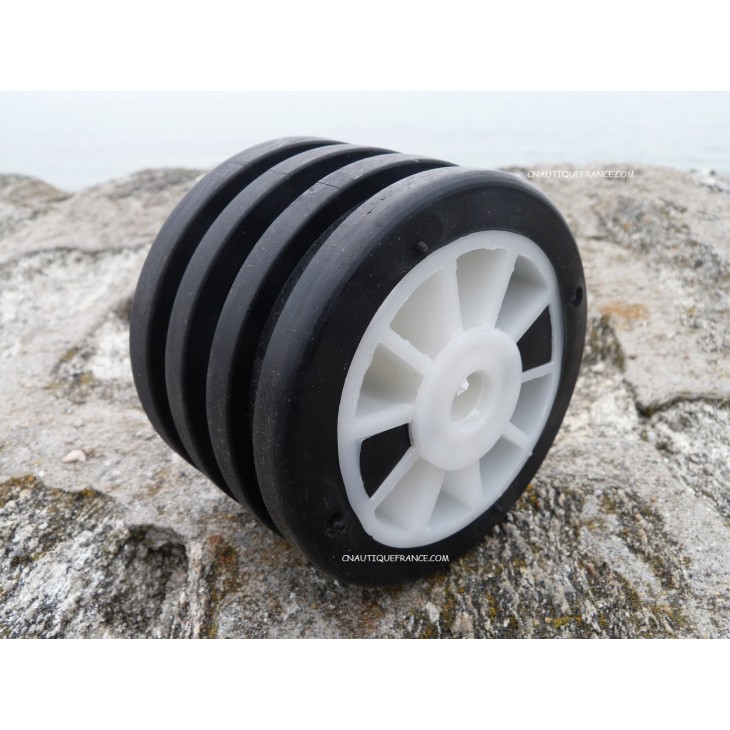 Galet conçu pour faciliter le support et le guidage du bateau sur remorque ou chariot de mise à l’eau.