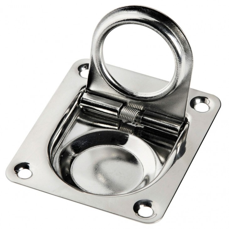 Sollevapavimento in acciaio inox lucidato a specchio.Dotato di molla per il ritorno dell'anello, che elimina le vibrazioni.Molto leggero e robusto.